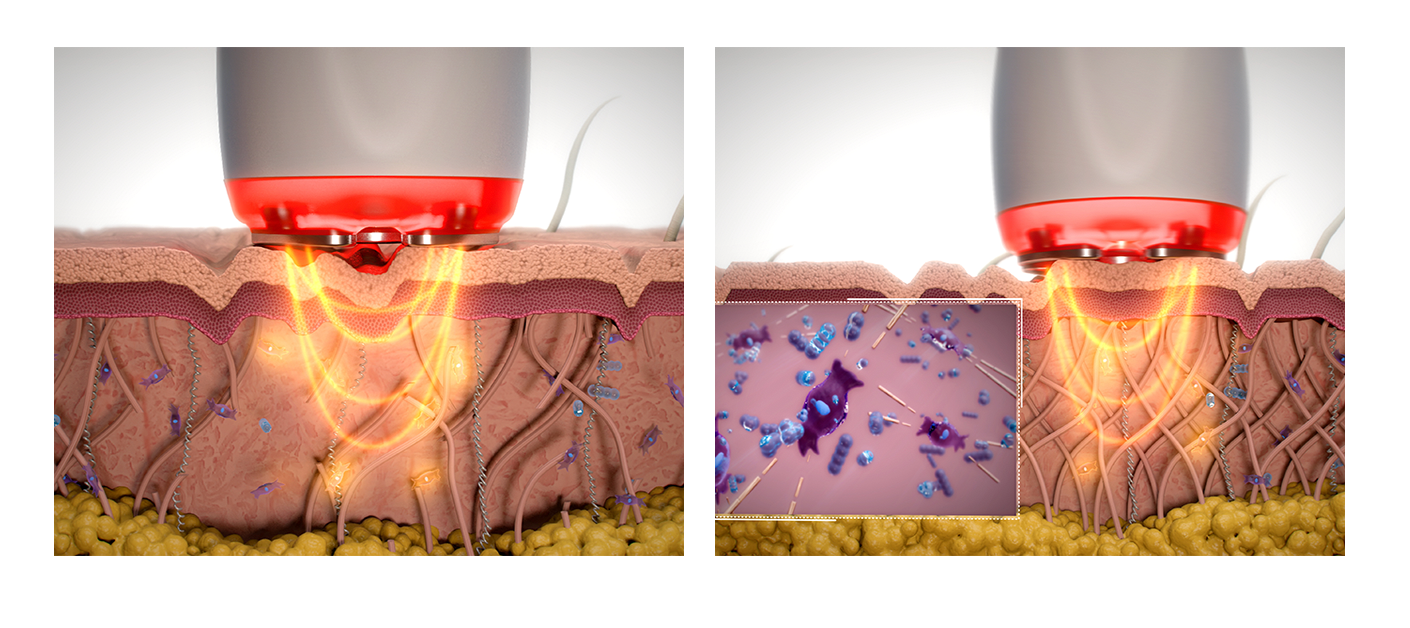 Using powerful 1MHz Multipolar Radio Frequency energy that waves 1 million times per second, it stimulates the dermis with vibration, torsion, and friction on the skin to regenerate and remodel collagen.