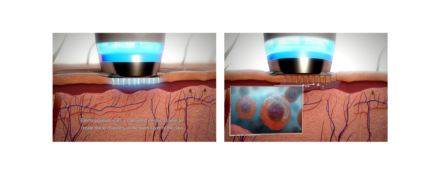 Electroporation creates micro channel using electrical stimulation, not a needle, and active ingredients are delivered through these channel.