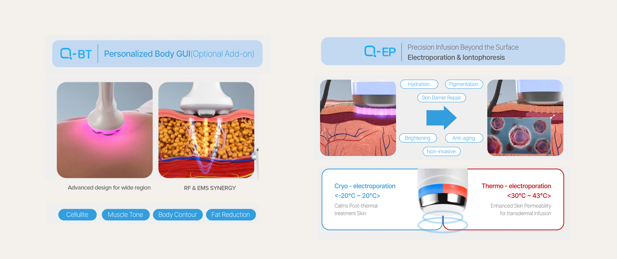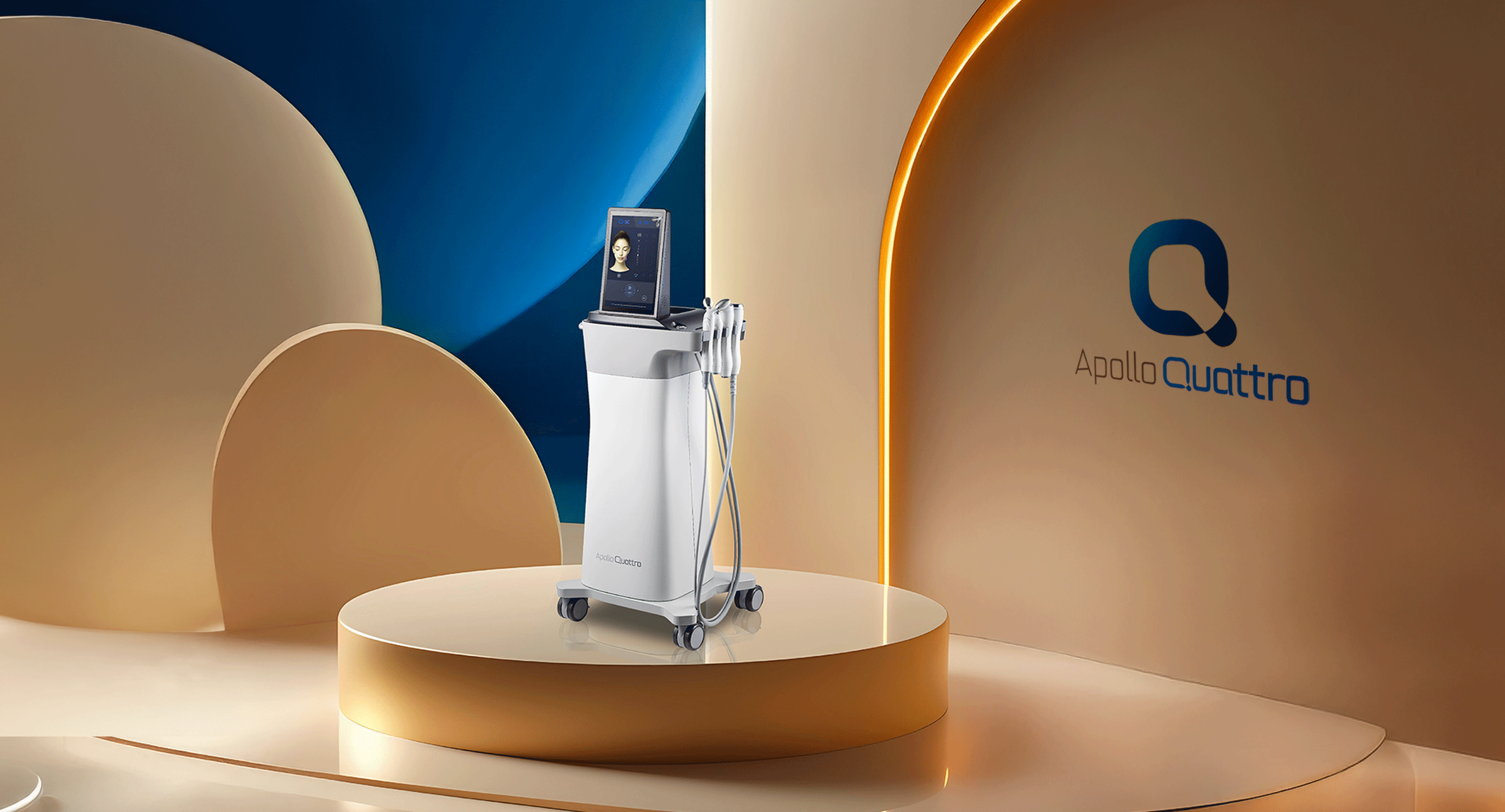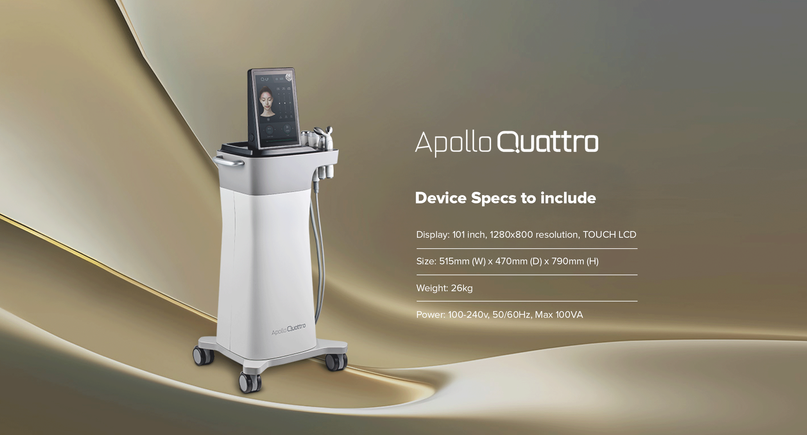 Apollo QuattroTM is a premium multi-functional skincare system that redefines non-invasive rejuvenation by combining Radiofrequency, Electrical Muscle Stimulation, and Electroporation into one powerful device.